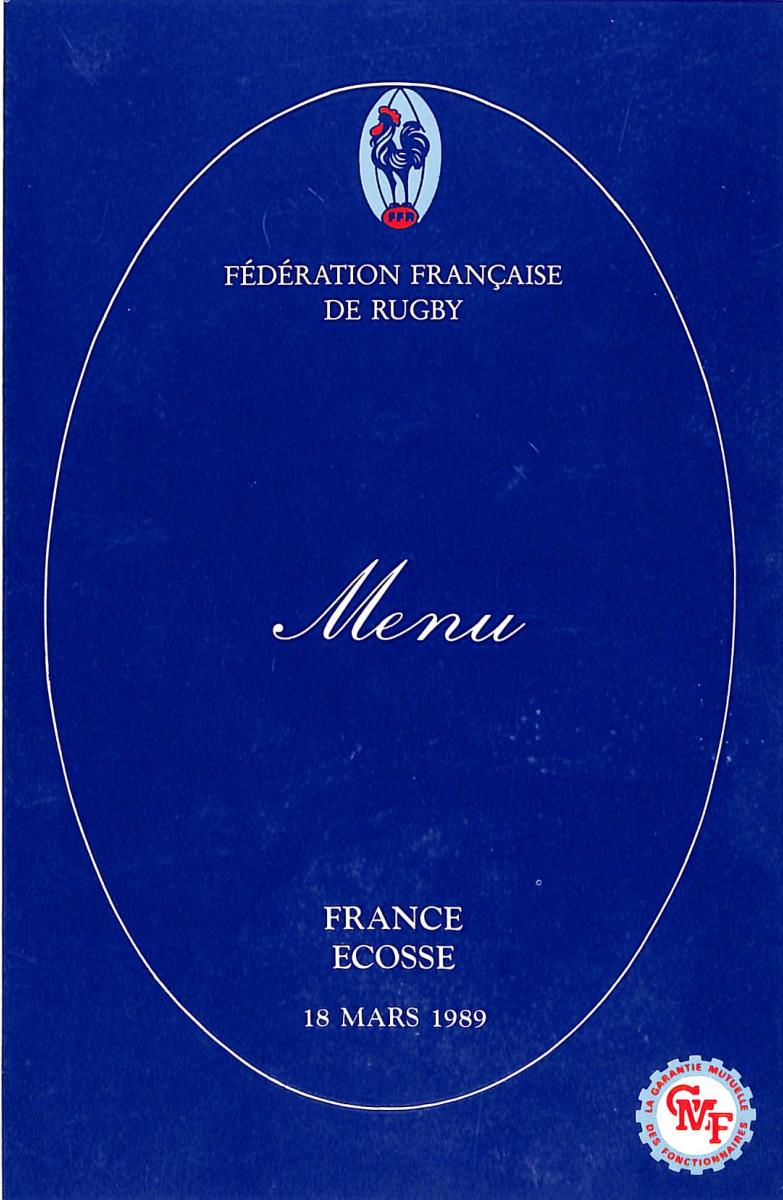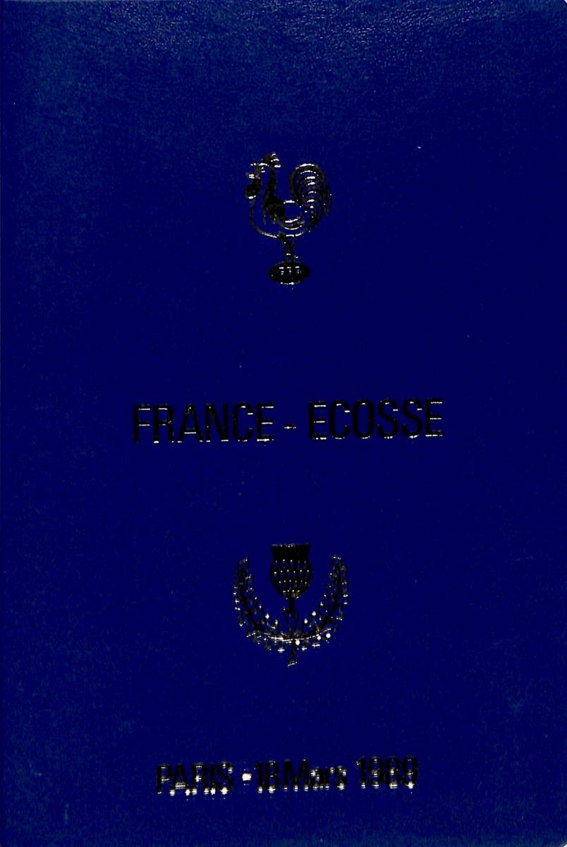 Programme officiel VIP du match opposant la France à l'Écosse le 18 mars 1989 lors du Tournoi des 5 Nations (Menu en complément). État d'usage.