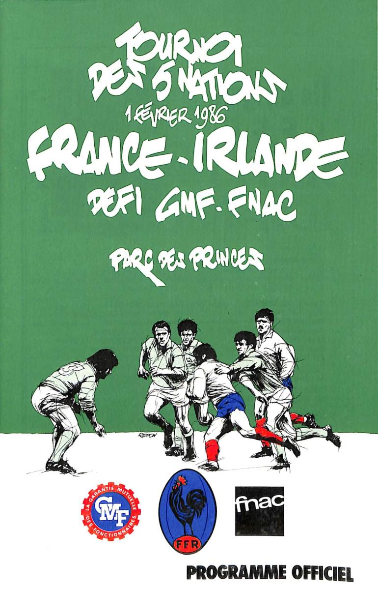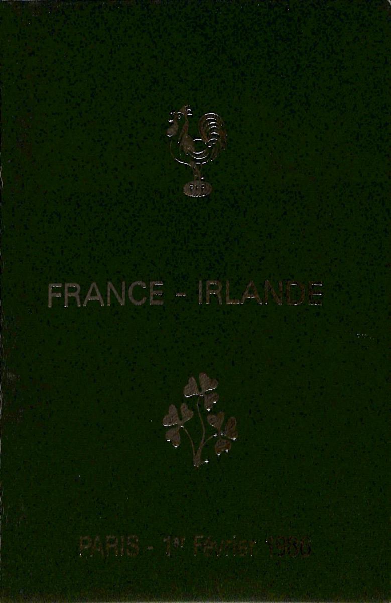 Programme officiel VIP du match opposant la France à l'Irlande le 1 février 1986 lors du Tournoi des 5 Nations. État d'usage.