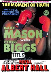 Programme officiel du combat entre Gary Mason et Tyrell Biggs du 4 octobre 1989 en anglais. Bon état. |