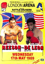 Programme officiel du combat entre Sammy Reeson et Carlos De Leon du 17 mai 1989 en anglais. Bon état. |