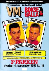Programme officiel du Championnat du Monde entre Paul Hodkinson et Ricardo Cepeda du 3 février 1993. Bon état. |