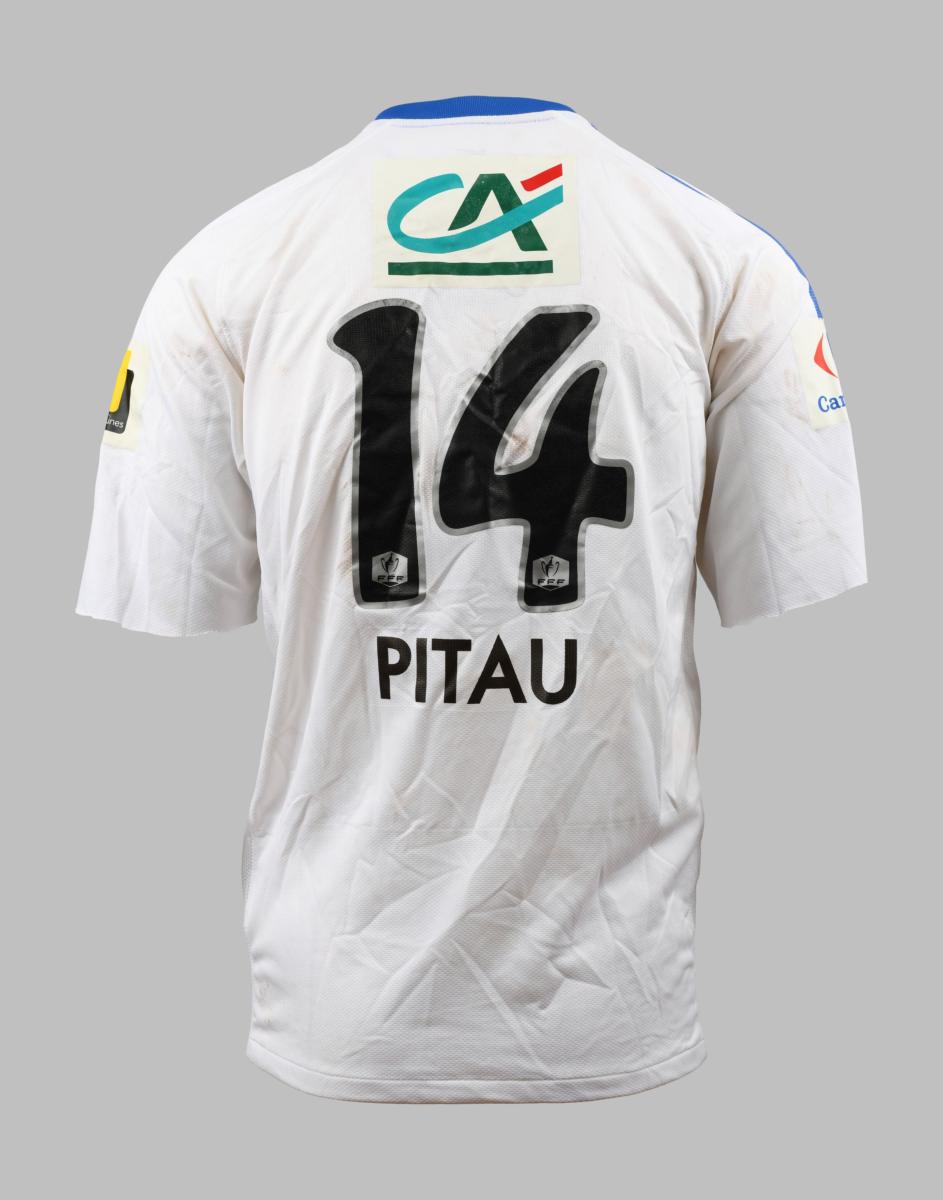 Milieu. Maillot N°14 du Montpellier Hérault Sport Club porté lors du ¼ de Finale de la Coupe de France contre le Gazélec Ajaccio le 21 mars 2012. Le joueur joue 90 minutes. Victoire 1-0 des Ajacciens. Les manches ont été coupées. Marque Nike. Modèle Dri-Fit. Fabriqué en Thaïlande. Taille M. Maillot porté et non lavé avec traces du match (match worn shirt, unwashed).