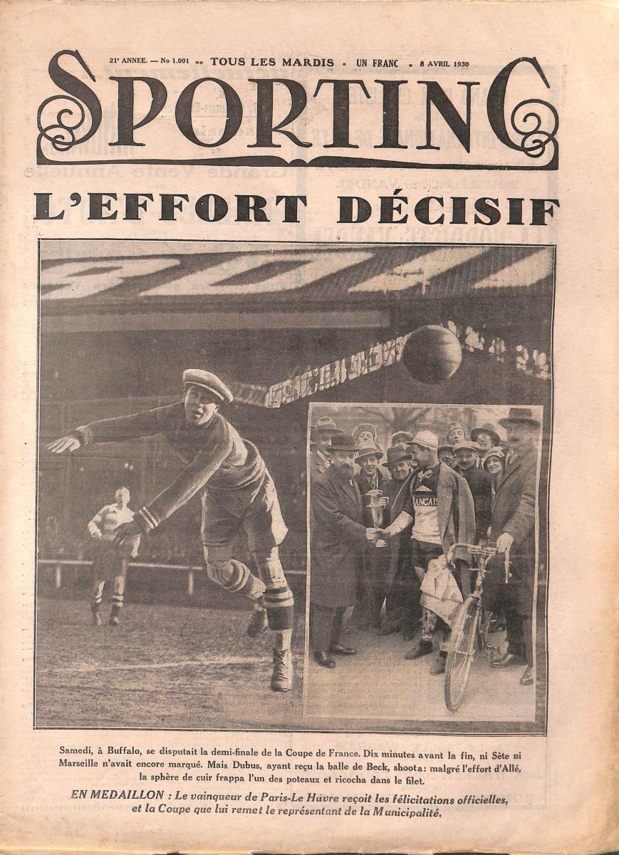 SPORTING N°1001 DU 8 AVRIL 1930. Football : Demi-Finale de la Coupe de France. État d'usage.