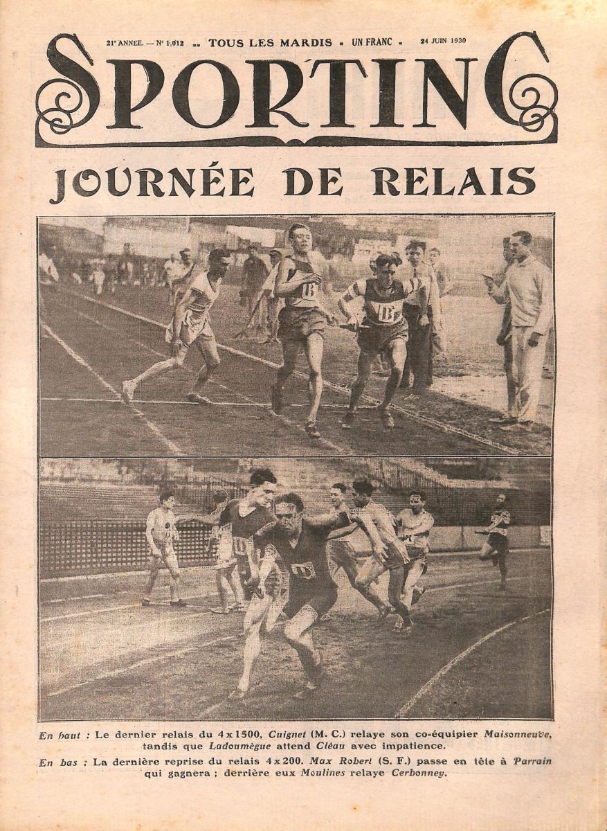 SPORTING N°1012 DU 24 JUIN 1930. Athlétisme : Journée de Relais. État d'usage.