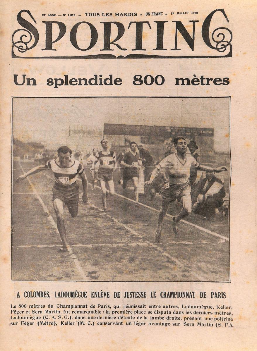 SPORTING N°1013 DU 1 JUILLET 1930. Athlétisme : Un Splendide 800 mètres à Paris. État d'usage.