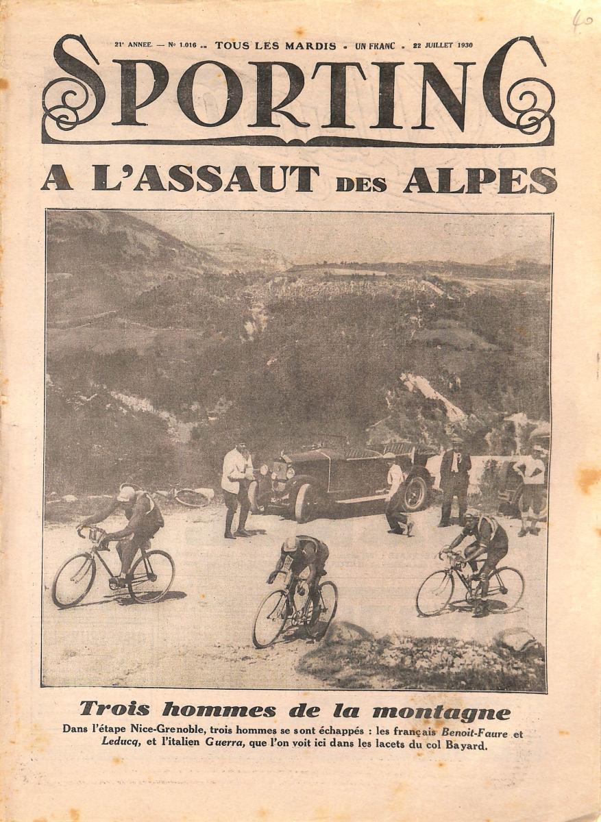 SPORTING N°1016 DU 22 JUILLET 1930. Cyclisme : Trois hommes de la montagne à l'Assaut des Alpes. État d'usage.