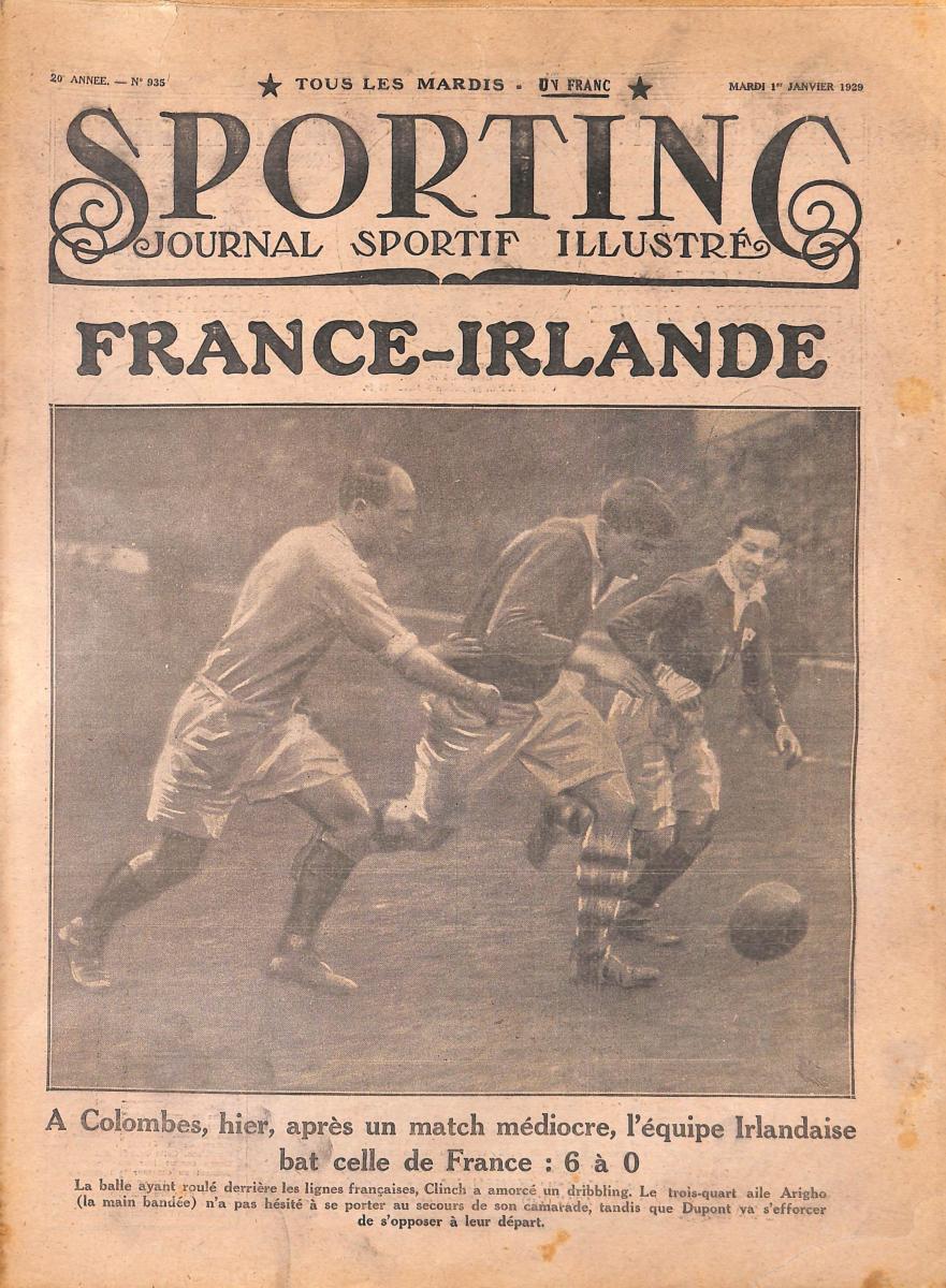 SPORTING N°935 DU 1 JANVIER 1929. Rugby : l'Équipe Irlandaise bat celle de France 6 à 0. État d'usage.