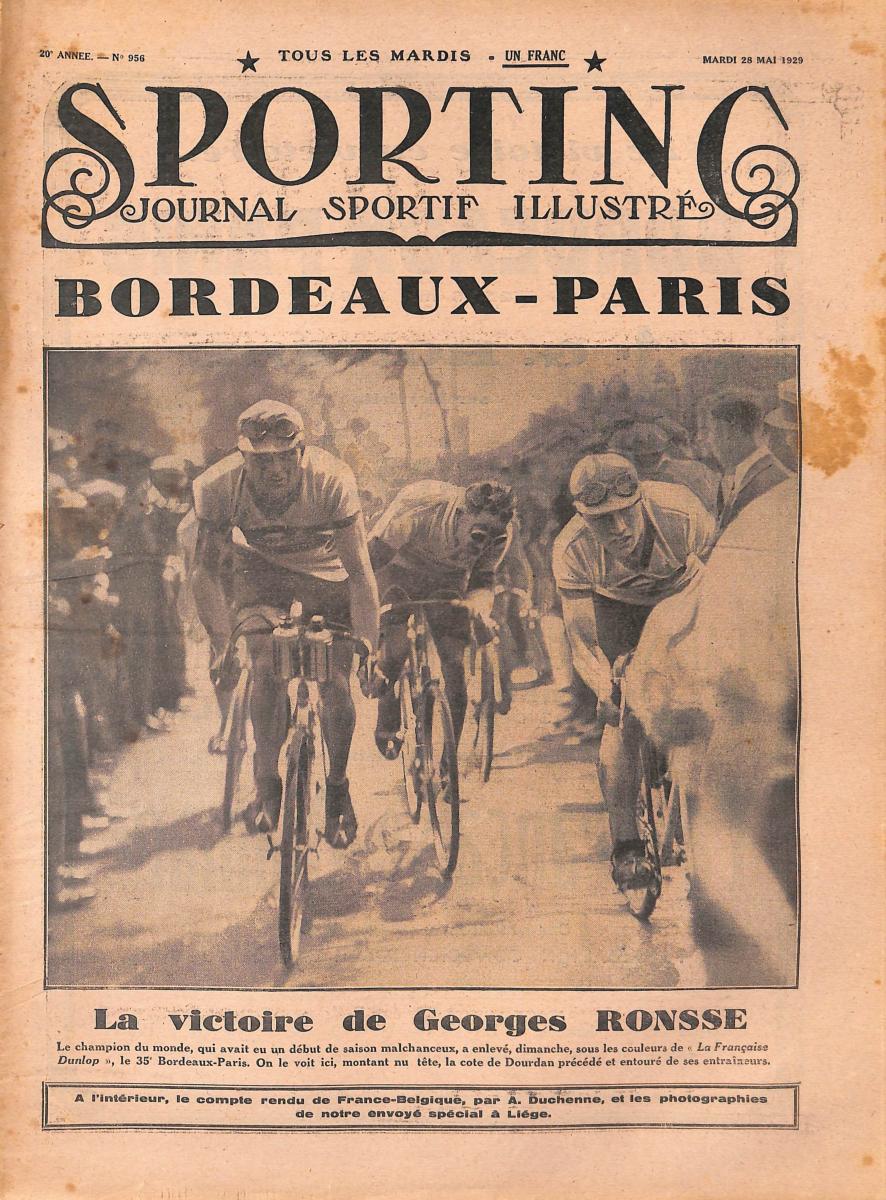 SPORTING N°956 DU 28 MAI 1929. Cyclisme : La victoire de Georges Ronsse à Bordeaux-Paris. État d'usage.