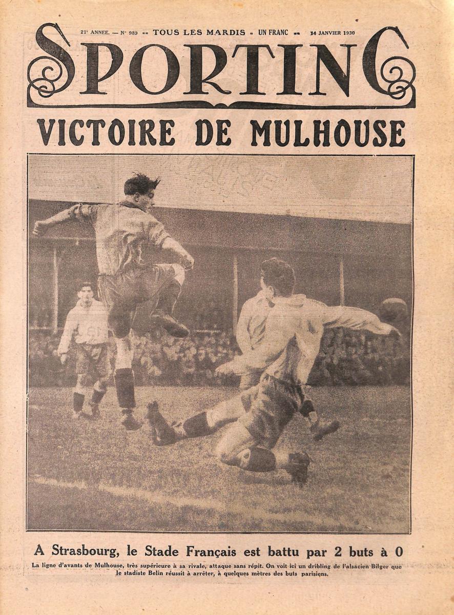 SPORTING N°989 DU 14 JANVIER 1930. Football : le Stade Français est battu 2 à 0 par Mulhouse. État d'usage.