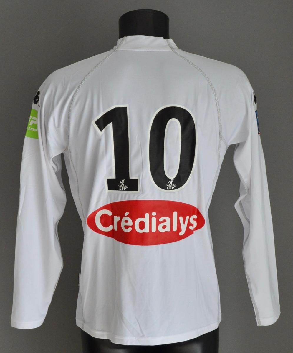 Maillot N°10 du Amiens SC préparé pour la saison 2010-2011 du Championnat de France de National. Match à déterminer. Marque Kappa. Fabriqué en Chine. Taille non indiquée. Maillot préparé (match issued shirt).
