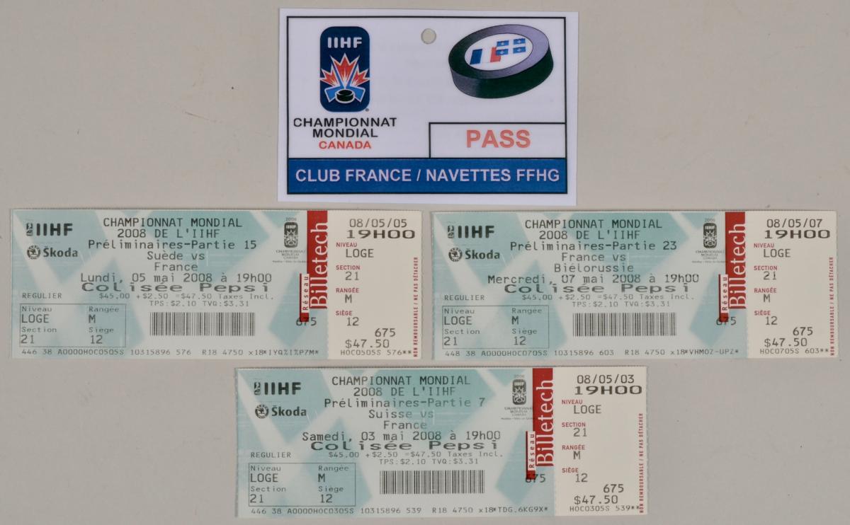 Ensemble de 3 tickets d'entrée du Championnat du monde 2008 au Canada, Matchs de l'équipe de France.