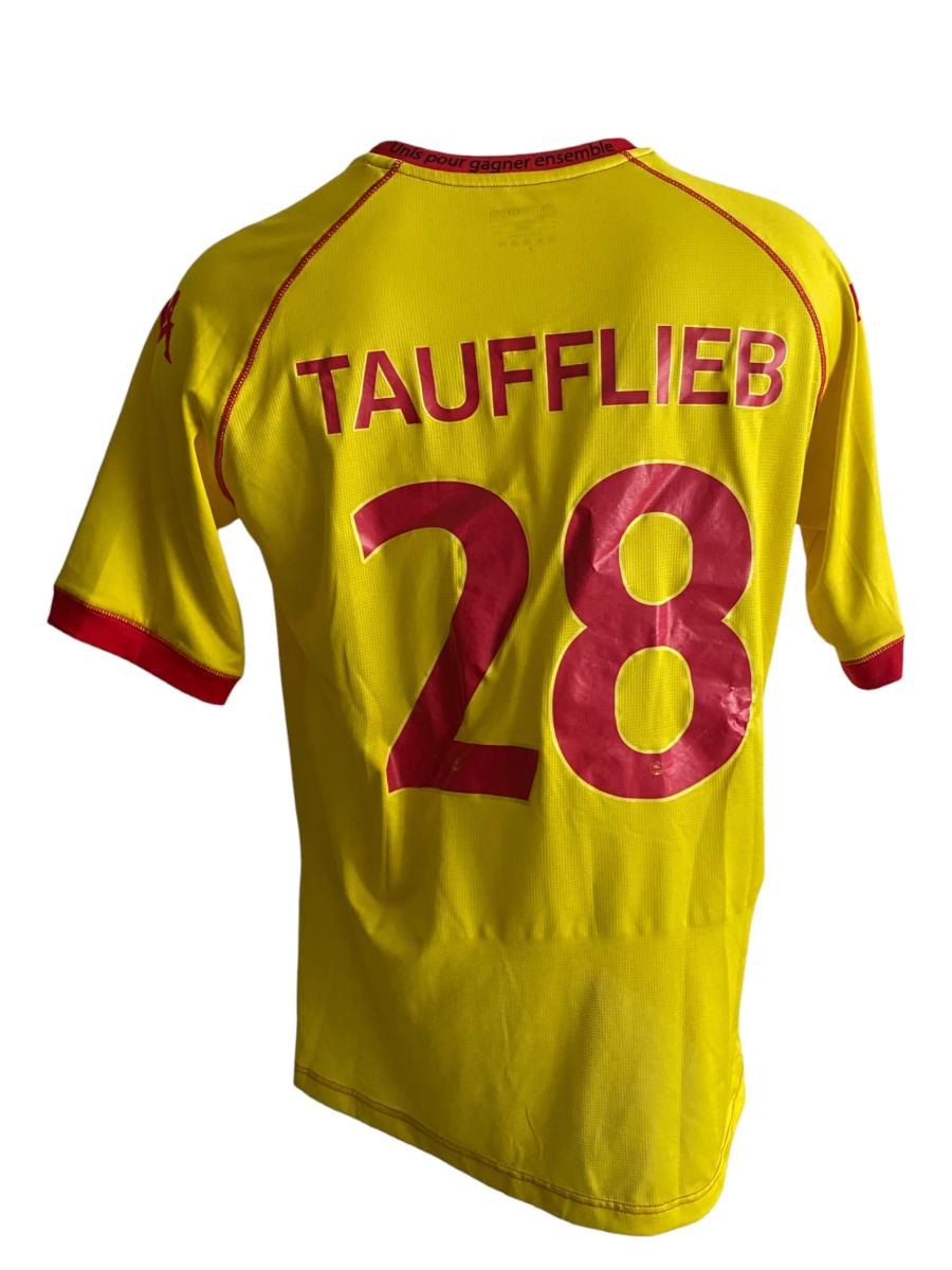 Maillot N°28 du Quevilly Rouen Métropole préparé pour la saison 2018-2019 du championnat de France de National. Match à déterminer. Le joueur joue 29 matchs. Marque Kappa. Taille L.