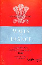 Programme officiel du match opposant le Pays de Galles à la France le 29 mars 1958 lors du Tournoi des 5 Nations. État d'usage. |