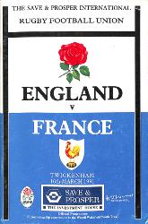 Programme officiel du match opposant l'Angleterre à la France le 16 mars 1991 lors du Tournoi des 5 Nations. État d'usage.