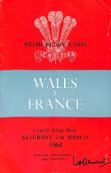 Programme officiel du match opposant le Pays de Galles à la France le 21 mars 1964 lors du Tournoi des 5 Nations. État d'usage.