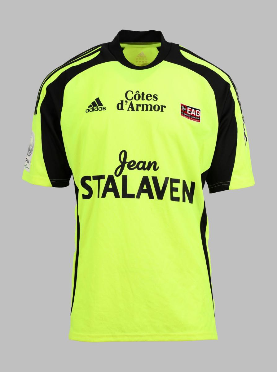 Défenseur. Maillot N°2 de l’En Avant Guingamp porté lors de la saison 2008-2009 du Championnat de France de Ligue 2. Le joueur participe à 35 rencontres. Match à déterminer. Marque Adidas. Modèle Climalite. Fabriqué en Thaïlande. Taille L. Maillot porté (match worn shirt).